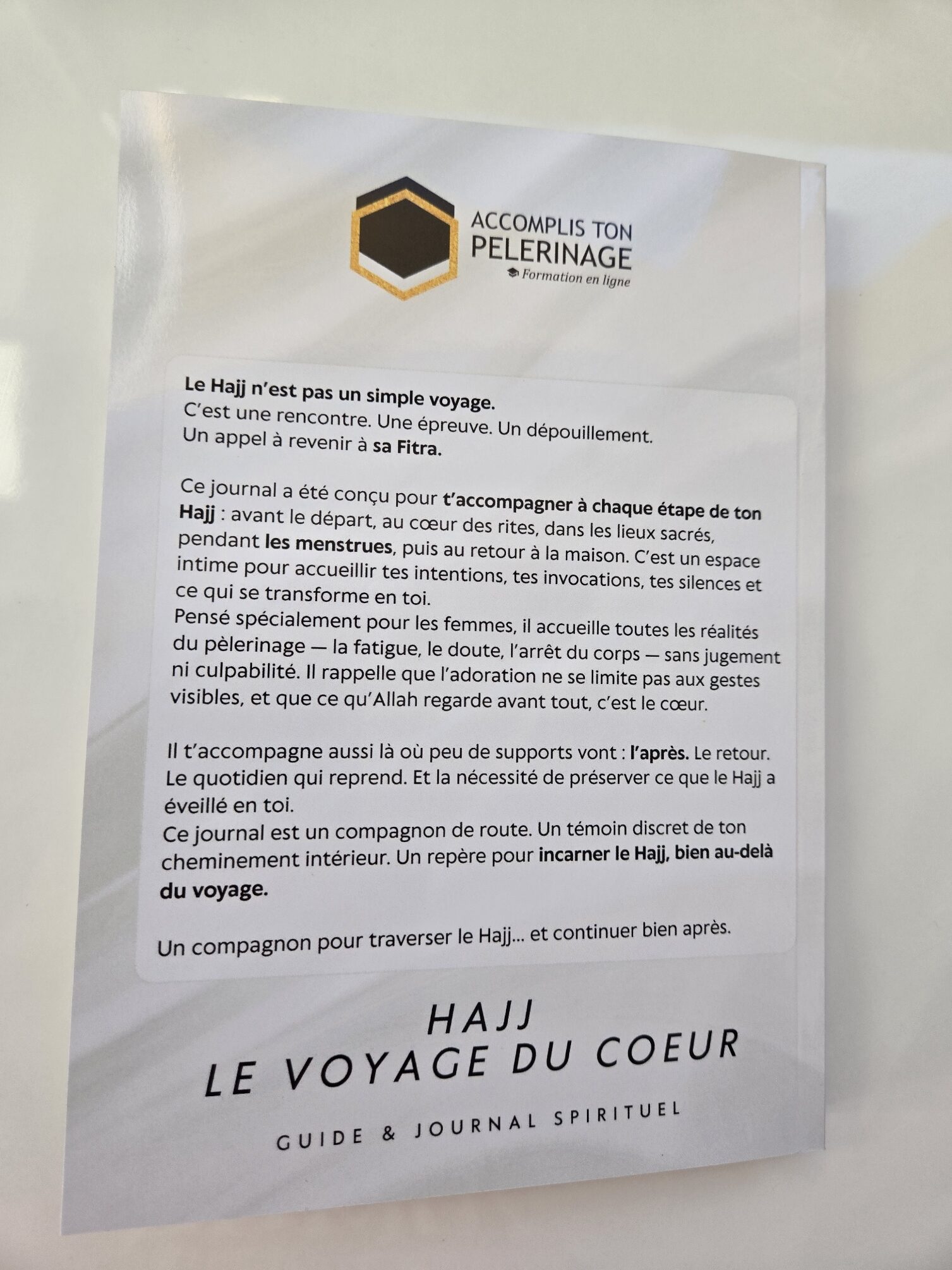 Un journal spirituel conçu pour accompagner les femmes dans les rites du Hajj et dans ce qu’ils éveillent intérieurement.